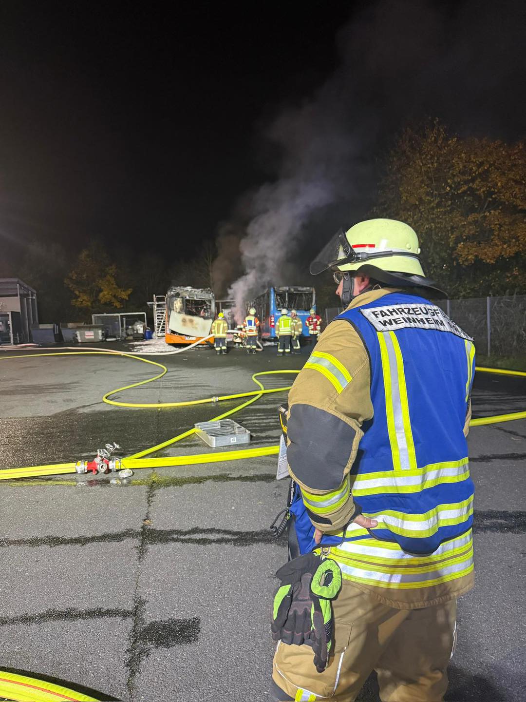 Am vergangenen Freitag wurde die Feuerwehr Weinheim zu einer Überlandhilfe nach Hirschberg alarmiert. In einem dortigen Gewerbegebiet war ein Bus mit Wasserstoff-/Elektroantrieb in Brand geraten. Durch die enorme Hitze und die schnelle Brandausbreitung griff das Feuer auch auf einen weiteren Bus über. Die entstehende große, schwarze Rauchwolke war weithin sichtbar und sorgte für zahlreiche Notrufe.