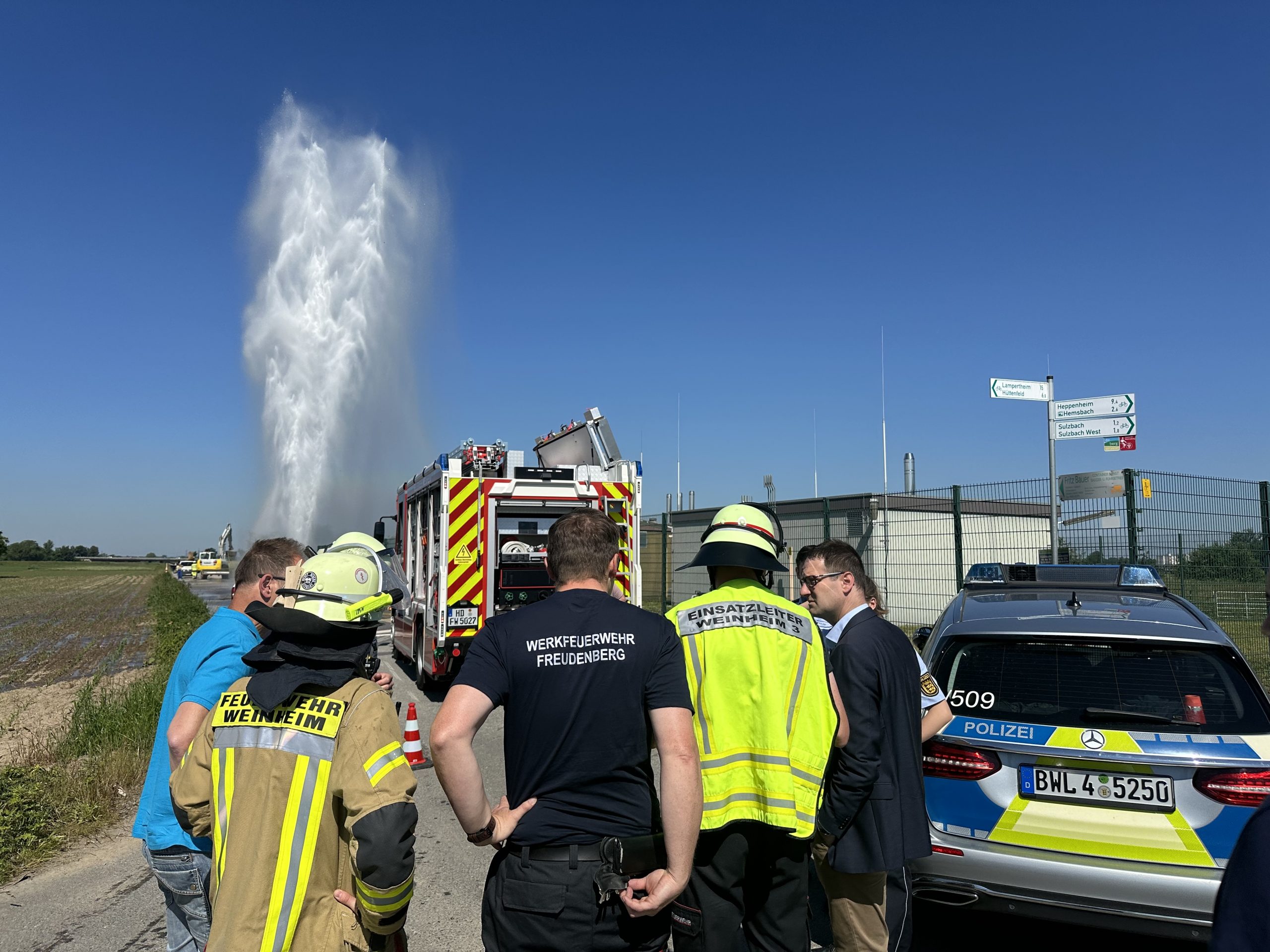 Spektakulärer Einsatz der Weinheimer Feuerwehr am Samstag – Stadtwerke gaben schnell Entwarnung. Weinheim. Die Telefone standen nicht still, denn die Wasserfontäne am Sulzbacher Dammweg am Samstagmorgen sprudelte 15 Meter hoch in den Himmel und war entsprechend weit zu sehen – sogar von der ...