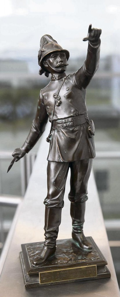 Aber trotzdem freut man sich über diese Verstärkung sehr, die auf Vermittlung der Berufsfeuerwehr München ihren Weg zurück an die Bergstraße gefunden hat. Seine stattliche Erscheinung in historischer Feuerwehruniform macht in der Tat eine Menge her. Aber vor allem ist es die kuriose Geschichte dahinter, die diese Bronzefigur so wertvoll für die Weinheimer Wehr macht.