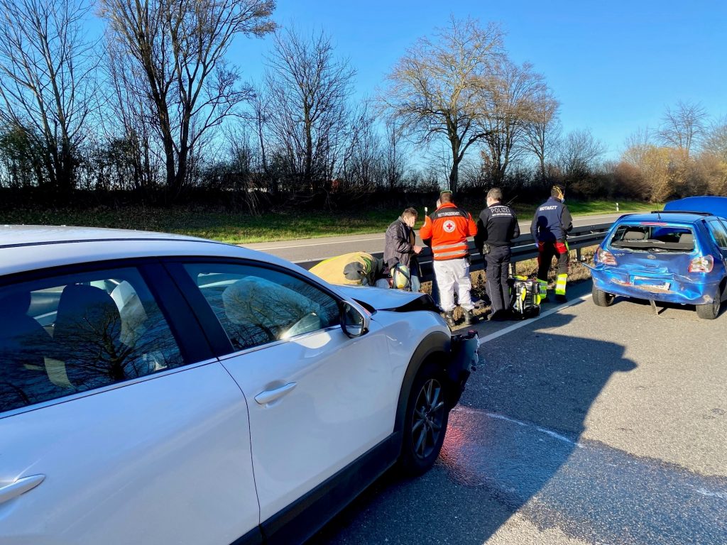 Weinheim. Aus bisher ungeklärter Ursache kam es am Mittwochnachmittag zu einem Verkehrsunfall. Ein Mazda Fahrer war frontal auf einen VW Polo aufgefahren. Durch den heftigen Aufprall waren beide Fahrzeuge stark beschädigt, eingeklemmt wurde aber niemand. Die Freiwillige Feuerwehr Weinheim Abteilung Stadt wurde gemeinsam mit dem Rettungsdienst und der Polizei zu dem Einsatz alarmiert. Drei leicht verletzte Personen mussten vom Rettungsdienst vor Ort erstversorgt und zur weiteren Behandlung ins Krankenhaus gebracht werden. Die Feuerwehr unterstützte die Polizei bei der Verkehrsabsicherung und stellte den Brandschutz sicher. Auslaufende Betriebsstoffe der Unfallfahrzeuge wurden aufgefangen und gebunden. Um eine weitere Brandgefahr auszuschließen, wurden die Fahrzeugbatterien abgeklemmt. Die Trümmerteile auf der Fahrbahn wurden zur Seite geräumt. Während der Unfallaufnahme mussten beide Fahrspuren stadteinwärts gesperrt werden. Der Verkehr wurde über den Standstreifen umgeleitet. Durch den Unfall kam es zu leichten Verkehrsbehinderungen im Feierabendverkehr. Nach einer halben Stunde konnte die Feuerwehr den Einsatz beenden und die Einsatzstelle der Polizei Weinheim übergeben. Diese hat die Ermittlungen zur Unfallursache aufgenommen.