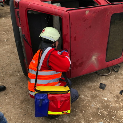 Weinheim-Sulzbach. Die realistische Unfalldarstellung des Deutschen Roten Kreuz hatte am Samstag gemeinsam mit dem Team der Fritz Bauer GmbH auf dem Gelände dortigen Firmengelände am Magdacker in Sulzbach-West ein großes Übungsszenario vorbereitet. Um die Einsatzkräfte auf Extremsituationen und schwerverletzte Personen vorzubereiten, wurden die Mimen entsprechend geschminkt und das Übungsgelände entsprechend vorbereitet. Als Übungsszenario wurde eine Verpuffung mit Explosion angenommen. Dadurch wurden mehrere Personen unter Trümmern eingeklemmt. Kurz nach 13 Uhr startet die Alarmübung und die teilnehmende Freiwillige Feuerwehr Weinheim Abteilungen Sulzbach und Stadt rückten zum Magdacker ab. Weitere Kräfte der 4. Einsatzeinheit Nord des Deutschen Roten Kreuz und des Technischen Hilfswerk Ladenburg rückten ebenfalls mit an. Um die Übungslage richtig einschätzen zu können musste sich die Einsatzleitung zunächst einen Überblick verschaffen. Parallel dazu bauten Feuerwehr und Technisches Hilfswerk eine gemeinsame Einsatzleitung auf.