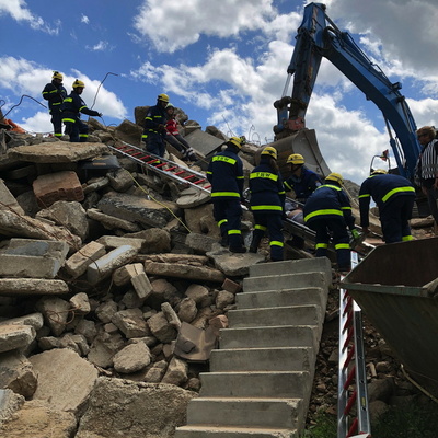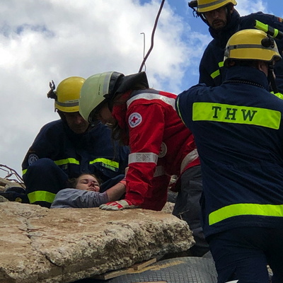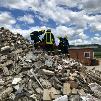 Die nachrückenden Fahrzeuge fuhren den Bereitstellungsraum an und bekamen ihre Aufgaben zugewiesen. Durch die Hilferufe der Mimen und auch der zunächst unübersichtlichen Lage wurde der Druck auf die Einsatzkräfte bewusst erhöht. Die eingesetzten Kräfte ließen sich davon aber nicht beirren und brachten innerhalb kürzester Zeit Ordnung in das geplante Chaos. Das Deutsche Rote Kreuz übernahm die Vorsichtung der verletzten Personen und kategorisierte die Dringlichkeit der Rettung. So wurden neben Einsatzabschnitte auch Schwerpunkte gesetzt. Hier war es auch besonders wichtig, die Einsatzkräfte nach ihren Möglichkeiten und Kernaufgaben zu koordinieren. So übernahm die Feuerwehr Befreiung einer Person mit hydraulischem Rettungsgerät aus einem Pkw, während sich das Technische Hilfswerk um die Befreiung einer Person unter einem Betonbrocken kümmerte. Gemeinsam kümmerten sich DRK, THW und Feuerwehr in einem anderen Einsatzabschnitt bei dem eine Person patientengerecht und schonend von einem Trümmerberg gerettet werden musste. Das Deutsche Rote Kreuz baute einen Patienten Sammelplatz auf und kümmerte sich dort um die medizinische Versorgung. Nach gut zwei Stunden hatten die Einsatzkräfte das Übungsszenario und die Ihnen gestellten Aufgaben gemeistert. Übungsbeobachter und stellvertretende Feuerwehrkommandant Ralf Mittelbach bedankte sich bei Abteilungskommandant Christian Knapp und Manuel Schwindt vom Technischen Hilfswerk Ladenburg für die Ausarbeitung und Organisation der Übung. Sein Dank galt auch den Mimen für ihre Ausdauer und gutes Schauspiel. Auch die Mimen Betreuern im Hintergrund waren wichtig, da Sie während der Übung die Aufsicht für die Mimen übernehmen und bei Bedarf erkennen, ob es sich um Übung oder Ernst handelt. Solche Übungen sind nicht einfach zu realisieren und es ist schwierig solche Übungsobjekte zu finden. Daher galt auch ein besonderer Dank an die Firma Fritz Bauer GmbH, die nicht nur ihr Gelände für die Übung zur Verfügung stellte, sondern auch zukünftig für ähnliche Übungen anbot. Bei der anschließenden Manöverkritik im Feuerwehrgerätehaus Sulzbach, wurde noch einmal mehr deutlich, dass der Schulterschluss der Hilfsorganisationen in der Region und gerade in Weinheim keine Lippenbekenntnisse, sondern gelebte Praxis sind. Mit der Übung konnte einmal mehr unter Beweis gestellt werden, wie leistungsstark das Ehrenamt zum Wohl der Bürgerschaft ist. Für das kommende Jahr ist eine ähnliche Übung im Mai geplant. Dabei soll die Zusammenarbeit weiter gestärkt werden und die Erkenntnisse der diesjährigen Übung bis dahin umgesetzt und erneut auf den Prüfstand gestellt werden.