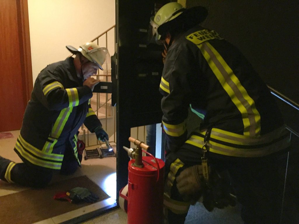 Kurz nach 19 Uhr wurde Brandgeruch in einem Mehrfamilienhaus am Multring gemeldet. Der Löschzug der Freiwilligen Feuerwehr Weinheim Abteilung Stadt rückte aus und erkundete mit mehreren Trupps die Einsatzstelle. Es wurde Brandgeruch im Treppenhaus festgestellt. Nach Rücksprache mit den Bewohnern wurden zunächst die Wohnungen kontrolliert. Nachdem mit Wärmebildkamera und Messgeräten nichts festgestellt werden konnte, wurde für den bewohnten Bereich Entwarnung gegeben. Bei der weiteren Suche konnte der Brandgeruch im Bereich des Briefkastens festgestellt werden. Es stellte sich heraus, dass dieser aus bisher unbekannter Ursache leicht gebrannt hatte. Mit der Kübelspritze wurde eine Brandnachschau durchgeführt und die Einsatzstelle an das Polizeirevier Weinheim für die weiteren Ermittlungen zur Ursache übergeben.
