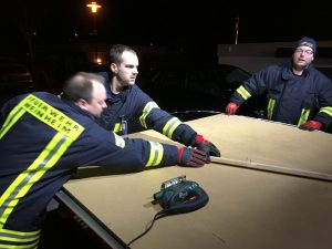 Ein Einsatz der besonders ärgerlichen und unnötigen Art bescherten Einbrecher den Einsatzkräften der Abteilung Stadt kurz nach null Uhr am 1. Weihnachtstag. Das Polizeirevier Weinheim rief die Freiwilligen im Rahmen der Amtshilfe zur Unterstützung um eine Eigentumssicherung durchzuführen. Während die einen friedlichen feierten, schafften es die Einbrecher das Weihnachtsfest für die Bewohner und auch die eingesetzten Kräfte zu zerstören. Die Unbekannten verschafften sich gewaltsam Zutritt in ein Anwesen in der Zinkgräfstraße. Während sich die Polizeibeamten um die Ermittlungen und Spurensicherung kümmerten, wurde von der Feuerwehr die Einsatzstelle ausgeleuchtet. Im weiteren Verlauf wurde eine Notverschalung durchgeführt und das Gebäude wieder verschlossen.