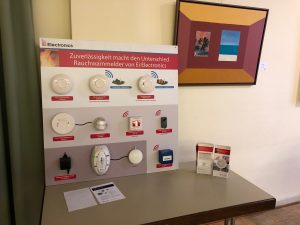 Andreas Kränzle von der Firma Kränzle hatte verschieden Rauchwarnmelder mitgebracht, die sich auf die jeweiligen Probleme einstellen können. So stellte er für Schwerhörige entsprechende Geräte vor, die speziell für Hörgeschädigte mit zusätzlichem Vibrations-Alarm und Lichtsignalen entwickelt wurden. Auch erklärte er die Sinnhaftigkeit von funkvernetzte Rauchmeldern, die dank der Alarmweiterleitung einen wichtigen Zeitvorsprung schaffen können, um sich in Sicherheit zu bringen. Gerade wenn Angehörige im selben Haus wohnen, empfehlen sich solche vernetzte Rauchmeldersysteme, um Senioren mit körperlichen Einschränkungen schnell zu helfen. Manuel Heindtel vom BGV – Badische Versicherungen Büro Weinheim, stellte den Teilnehmern die Infobroschüre „richtiges Verhalten im Brandfall“ zur Verfügung, mit dem die Infos des Nachmittags zum nachlesen festgehalten wurden.