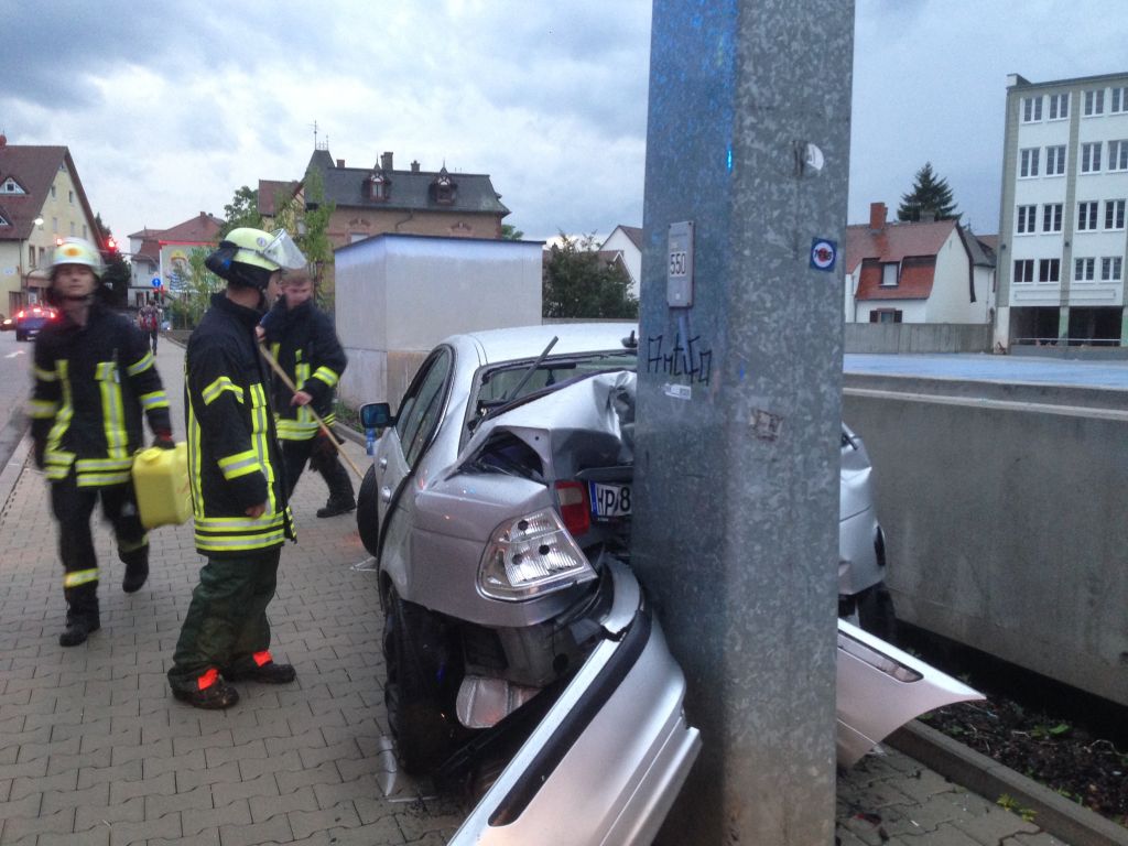 Fahrzeug kracht in Verkehrsschild