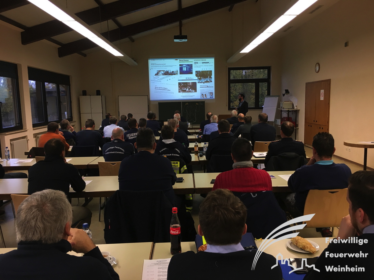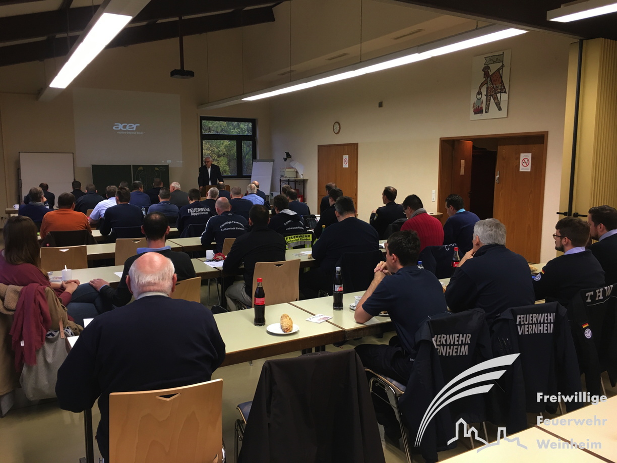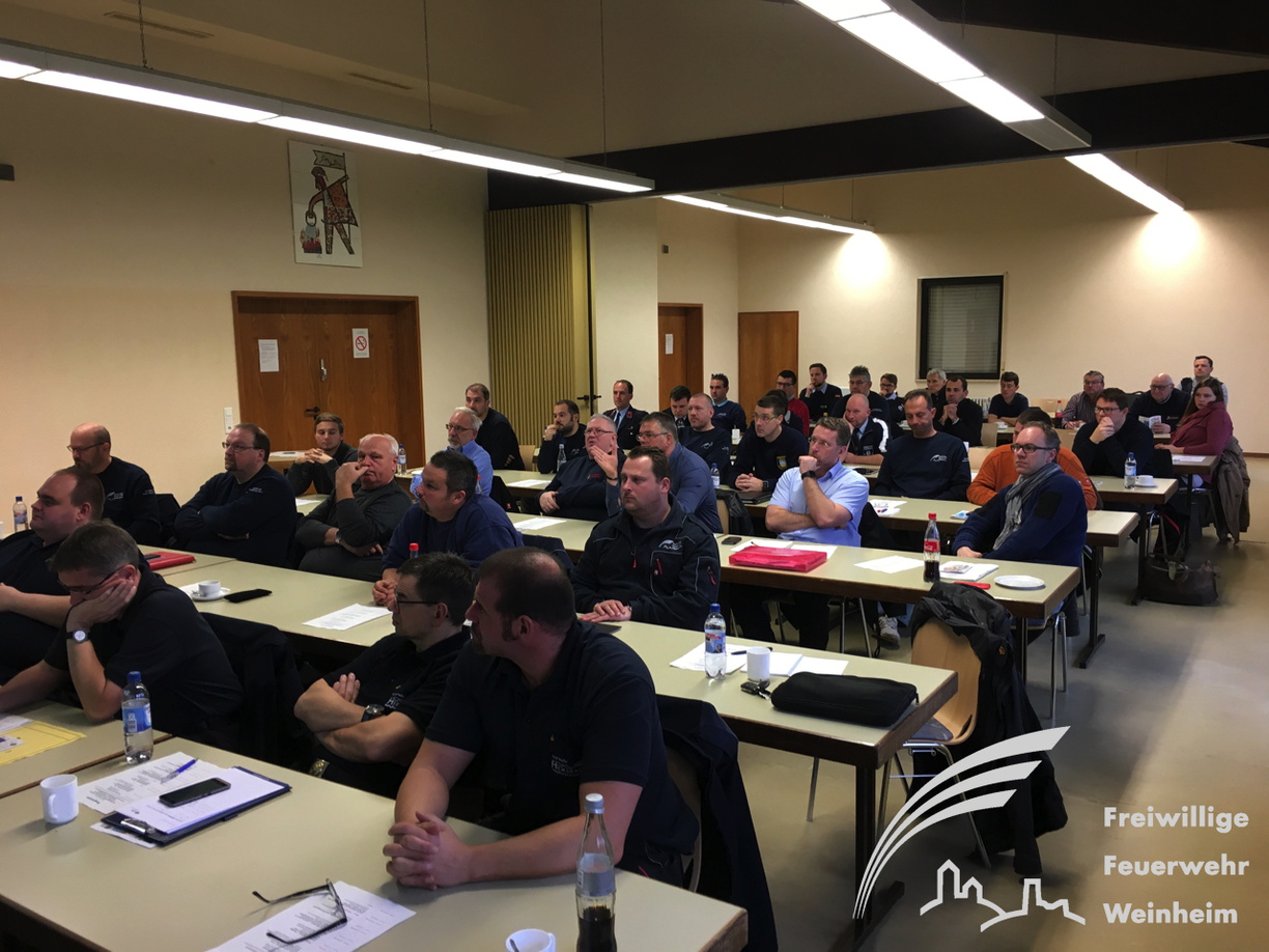 Bereits zum 25sten mal veranstaltete die Freiwillige Feuerwehr Weinheim ein Seminar für die eigenen Führungskräfte um sich weiterzubilden. Eine gute und wichtige Tradition ist es auch die benachbarten Feuerwehren und Hilfsorganisationen dazu einzuladen. Da die Weinheimer Feuerwehr ein wichtiger Partner in der Region ist und daher auch oft über die Stadtgrenzen hinaus zur Unterstützung gerufen wird, dient dieses Seminar auch dazu sich persönlich und die Arbeitsweisen der jeweiligen Organisation kennenzulernen. Dieses Jahr nahmen neben den Weinheimer Gruppen- und Zugführern auch Führungskräfte der Feuerwehren aus Hemsbach, Viernheim, Dossenheim, sowie der Partnerstadt Feuerwehr Lutherstadt Eisleben, der Werkfeuerwehren Freudenberg und Naturin, dem Technischen Hilfswerk Ladenburg, und der Johanniter Unfallhilfe Viernheim teil. Feuerwehrkommandant Reinhold Albrecht begrüßte die Teilnehmer von Feuerwehren und Hilfsorganisation sowie seinen Nachfolger Sven Lillig, der zum 1. Januar bei der Weinheimer Feuerwehr seinen Dienst beginnt.  Wie bereits bei den letzten 25 Führungsseminaren, gab es wieder ein interessantes Seminarprogramm für die Führungskräfte.