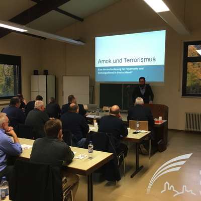 In seinem Fachvortrag „Amok und Terrorismus – Eine Herausforderung für Feuerwehr und Rettungsdienst in Deutschland“ ging Marvin Veith, Organisatorischer Leiter Rettungsdienst der Johanniter Unfallhilfe Viernheim darauf ein, wie die Konzepte zur Abarbeitung von Amoklagen und Terrorismuseinsätzen in den unmittelbaren Bundesländern funktionieren. Veith gab einen Lagebericht, wie Deutschland seit dem 11. September 2001 auf solche Lagen vorbereitet ist und welche Zusammenarbeiten zwischen Polizei, Feuerwehr und Rettungsdienst stattfinden müssen, um eine Reibungslose und koordinierte Zusammenarbeit aller eingesetzten Behörden zu ermöglichen. Genauso ging Veith auf den Massenanfall von Verletzten (MANV) ein. Dieses bezeichnet eine Situation, bei der eine große Zahl von Betroffenen nach einem Unglück/ Unfall versorgt werden müssen.