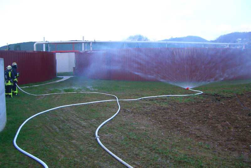 Die Biogasanlage in der Waidallee wird von der Familie Axel Großhans betrieben, welcher als Einsatzkraft der Feuerwehrabteilung Lützelsachsen-Hohensachsen angehört. So lag es Nahe die Biogasanlage im direkten Einsatzgebiet der Wache Süd als Übungsobjekt herauszugreifen und im Rahmen einer Gesamtübung zu beüben. Ausgearbeitet wurde diese Übung von den Zugführern Dirk Baumann, Rolf Springer und Abt. Kommandant Matthias Bente. Es wurde angenommen, dass es im Generatorgebäude des Kraftwerkes zu einem Brand durch Fehlfunktion eines Generators gekommen ist. Durch den damit verbundenen Ausfall des Generators kommt es nach ca. 15 Minuten zum Austritt von Faulgas durch die Überdruckentlastungseinrichtungen an den Gährbehältern. Die vorhandene Wetterlage drückte das schwere Gas nun nach unten und damit auch in die Technikräume in den denen ein Mitarbeiter des Kraftwerkes gearbeitet hatte. Für die Einsatzkräfte bedeutete die Lage, dass sie eine Menschenrettung und eine Brandbekämpfung durchführen musste und dabei den Eigenschutz nicht aus den Augen verlieren durfte. Die Menschenrettung und die Brandbekämpfung wurden unter schweren Atemschutz durchgeführt. Zur Brandbekämpfung wurde Schwerschaum eingesetzt, da sich im Generatorraum ein Behältnis mit ca. 1.000 Liter Öl entzündet hatte. Zum Schutz der eingesetzten Kräfte wurde zwischen den Gährbehältern und dem Generatorraum eine Wasserwand aufgebaut, die das austretende Gas von der eigentlichen Einsatzstelle weg halten sollte. Diese Übungsszenario wurde im Vorfeld gemeinsam mit dem Betreiber abgesprochen, um eine möglichst realistische Situation annehmen zu können. So wurde auch die auf dem Gelände befindliche Zisterne mit einem Wasservorrat von ca. 60.000 Liter in die Übung eingearbeitet. Auf diese Weise konnte getestet werden, ob die Wasserversorgung für einen solchen Einsatz ausreichend ist. Vor Ort verschaffte sich auch Stadtbrandmeister Reinhold Albrecht einen Überblick, da ein Unfall in einer Biogasanlage nicht zu dem alltäglichen Einsatzgeschehen gehört.