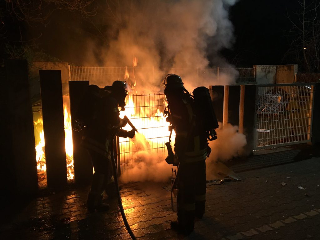 Das Wochenende der Feuerwehr Weinheim war alles andere als erholsam. Am Freitagabend gab es ein Feuer an der Dietrich Bonhoeffer Schule. Aus bisher ungeklärter Ursache brannte es am Freitagabend auf dem Gelände der Schule. Mehrere Müllcontainer wurden ein Raub der Flammen. Die Abteilung Stadt war mit zwei Fahrzeugen vor Ort und löschte das Feuer mit einem Rohr unter Atemschutz. Nach einer abschließenden Brandnachschau konnte die Einsatzstelle der Polizei übergeben werden. Diese hat die Ermittlungen zur Brandursache aufgenommen.