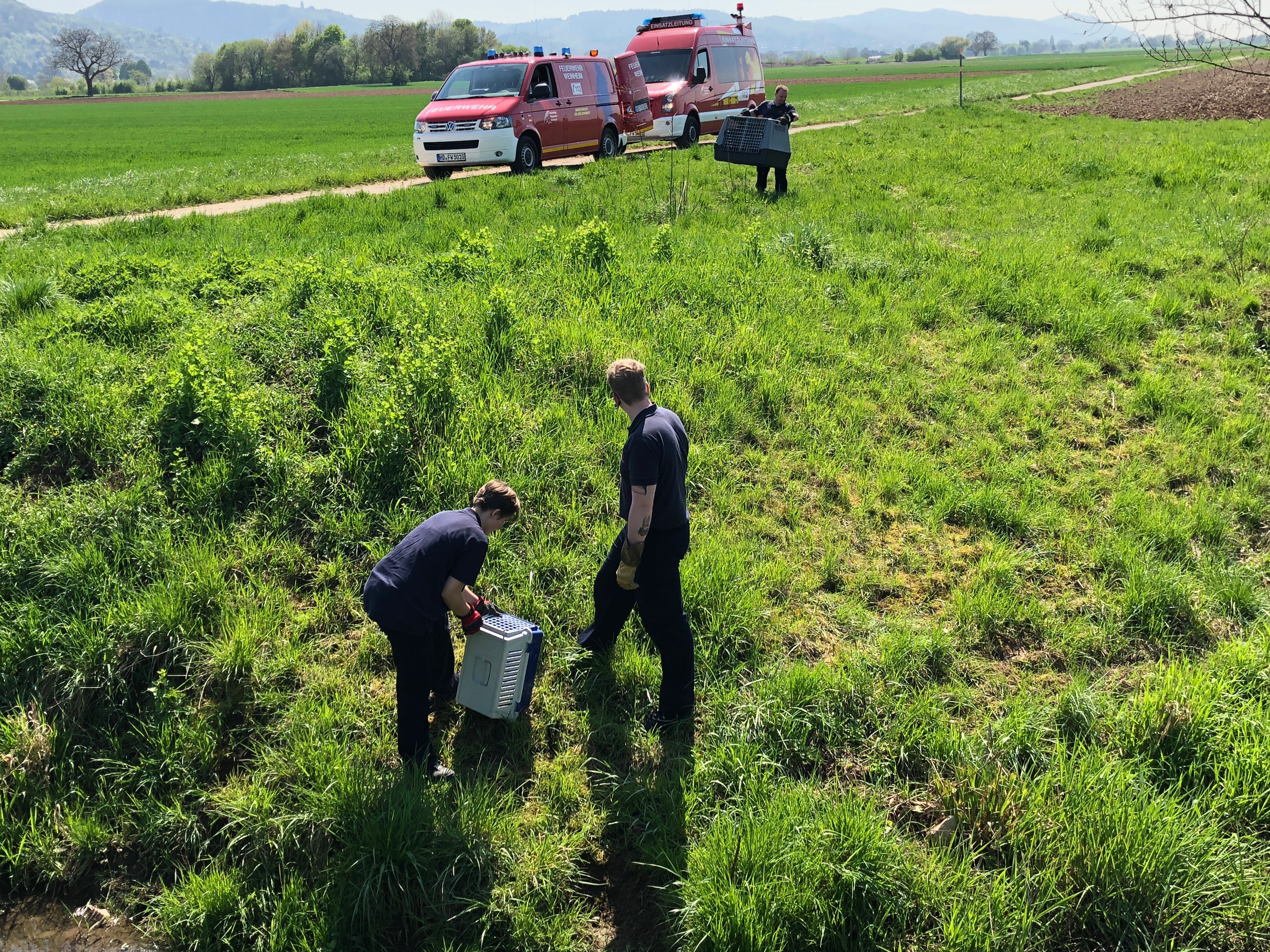 Diese fanden Sie im Schulbrunnen, wo Sie von den Haustechnikern gesichert wurden und die Feuerwehr nachforderten. Neu war die Situation für die Einsatzkräfte der Feuerwehr nicht, da bereits im vergangen Jahr ein ähnlicher Einsatz am Berufsschulzentrum abgearbeitet werden musste. Da der Schulbetrieb und das hohe Schüleraufkommen für die Tiere stressig waren und die Gefahr bestand, dass Sie wieder auf die Straße laufen entschied man sich für die Umsiedlung. Mit einem Kescher und viel Einsatzbereitschaft der Einsatzkräfte, sowie der Hausmeister wurde die Enten Mama samt ihrer Küken behutsam eingefangen und in eine Tierrettungsbox vorsichtig geleitet. Mit dem Feuerwehrauto ging es dann für die Entenfamilie zum Weiher nach Sulzbach-West. Die Boxen wurden geöffnet und die Enten konnten wieder ausgesetzt werden. Laut schnatternd verschwanden diese im Schilf. Ente gut alles Gut!