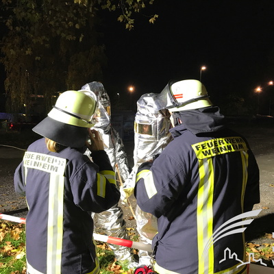 Als erste Maßnahme wurde die Straße Quentelberg und Langewiesenweg, sowie der Parkplatz auf dem das Schadstoffmobil stand abgesperrt. Parallel dazu wurde auf der Ost- und Westseite mit zwei Löschfahrzeugen ein Löschangriff sowie ein Schaumrohr vorbereitet. Außerdem wurde Sonderlöschmittel bereitgestellt. Mit dem Einsatzleitwagen, der mit modernster Kommunikationstechnik ausgestattet ist, wurden Datenblätter des Gefahrstoffs herausgesucht und Maßnahmen besprochen. Zum Eigenschutz der Einsatzkräfte wurde ein Rettungswagen in der Sachsenstraße in Bereitstellung gebracht. Einsatzkräfte rüsteten sich mit spezieller Schutzbekleidung aus und untersuchten den Stoff aus der Nähe. Die Erkenntnisse und Informationen übermittelten Sie an die Einsatzleitung. Zwei Feuerwehrfachberater „Chemie“ wurden angefordert und standen der Einsatzleitung beratend und unterstützend zur Seite. Aufgrund der einsetzenden Dämmerung wurde der Gerätewagen Licht in Stellung gebracht und leuchtet die Einsatzstelle großflächig aus.