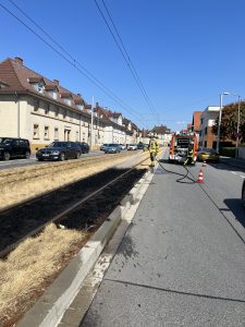 Am Dienstagmittag musste dann auch die Abteilung Stadt zu einem Brandeinsatz ausrücken. Das Grüngleis in der Mannheimer Straße war aus bislang unbekannter Ursache in Brand geraten. Mit einer Gießkanne unternahm ein Bürger bereits erste Löschversuche und konnte das Feuer bis zum Eintreffen der Weinheimer Feuerwehr in Schach halten. Die Einsatzkräfte bekamen den Entstehungsbrand mit einem Rohr schnell unter Kontrolle. Nachdem das Feuer gelöscht war, konnte auch dieser Einsatz beendet werden.