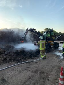 Weinheim. Am Dienstagmorgen wurde die Freiwillige Feuerwehr Weinheim mit der Abteilung Lützelsachsen-Hohensachsen kurz vor 7 Uhr in den Hammerweg alarmiert. Gemeldet wurde eine starke Rauchentwicklung aus der Kompostierungsanlage. Die Einsatzkräfte vor Ort konnten einen Kleinbrand feststellen, der bereits von den Mitarbeitern der Anlage gelöscht werden konnte. Allerdings konnten im Grünschnitt noch weitere Glutnester festgestellt werden. Daher wurde eine Schlauchleitung verlegt und das Brandgut mithilfe eines Radladers der Kompostierungsanlage auseinandergezogen. Nach einer Stunde war auch das letzte Glutnest abgelöscht, so dass die Einsatzkräfte wieder einrücken konnten.