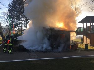 Aus bisher ungeklärter Ursache kam es am Mittwochvormittag auf dem Gelände des Miramar Weinheim im Hammerweg zu einem Brand einer außerhalb des Schwimmbadgebäudes liegenden Sauna. Die Rauchsäule war weithin sichtbar, so dass bei der Feuerwehrleitstelle mehrere Notrufe eingingen. Durch das umsichtige Handeln der Mitarbeiter des Badebetriebs konnte eine weitere Ausbreitung des Feuers verhindert werden. Die Feuerwehr wurde bei Ankunft eingewiesen, so dass die Einsatzstelle schnell gefunden werden konnte. Mitarbeiter hatten bereits erste Löschversuche mit Handfeuerlöschern unternommen um das Feuer einzudämmen. Trotzdem des schnellen Einsatz der Weinheimer Feuerwehrabteilungen Lützelsachsen-Hohensachsen und Stadt wurde die Sauna ein Raub der Flammen. Zwei Trupps unter Atemschutz gingen zur Brandbekämpfung mit einem Rohr vor. Parallel dazu wurde die Wasserversorgung sichergestellt. Nach gut 30 Minuten war das Feuer unter Kontrolle und es mussten noch kleinere Nachlöscharbeiten durchgeführt werden. Nach einer abschließenden Brandnachschau mit der Wärmebildkamera konnte die Einsatzstelle an die Polizei Weinheim übergeben werden. Diese übernimmt die Ermittlungen zur Brandursache.