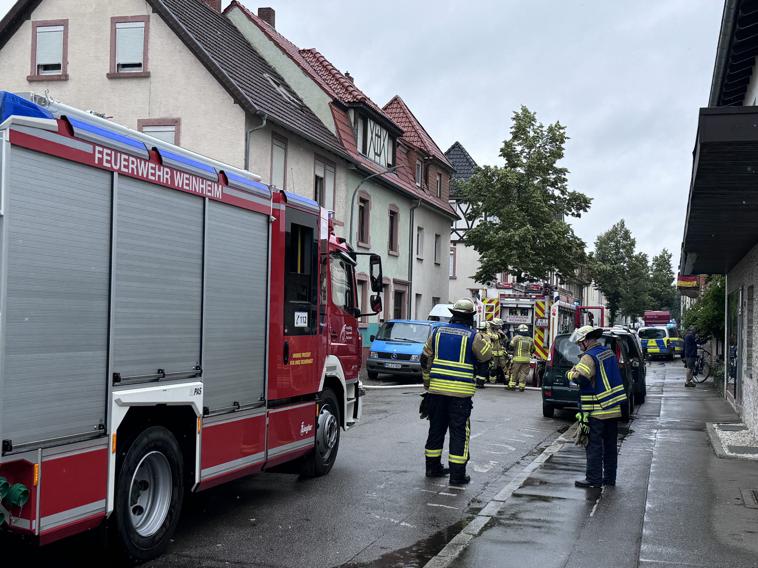 Kurz nach 10 Uhr wurde dann in der Alten Landstraße ein Zimmerbrand gemeldet. Daher rückten die Feuerwehrabteilungen Stadt und Lützelsachsen-Hohensachsen zur Einsatzstelle aus. Bei Ankunft der Feuerwehr konnte ein Anwohner bereits mit einem Gartenschlauch das Feuer durch ein Fenster löschen. Ein Trupp unter Atemschutz übernahm mit einem Rohr die Brandbekämpfung und führte Nachlöscharbeiten durch. Es stellte sich heraus, dass ein Wäschetrockner in Brand geraten war und die Flammen bereits auf die Elektroleitungen und Innenfassade des Raums übergegriffen hatten. Da die Flamme sich bis zur Decke gezüngelt ausgebreitet hatten, wurde auch die Decke und das Dach des Gebäudes auf Glutnester kontrolliert. Mit einem Hochdrucklüfter wurde der Brandrauch aus dem Gebäude gedrückt. Die Stadtwerke Weinheim kamen zur Unterstützung der Feuerwehr ebenfalls mit der Abteilung Strom vor Ort, da die Elektroleitungen durch den Brand beschädigt wurden. Um eine weitere Gefahr auszuschließen, wurde der betroffenen Bereich vom Stromnetz getrennt. Auch bei diesem Einsatz wurde niemand verletzt.