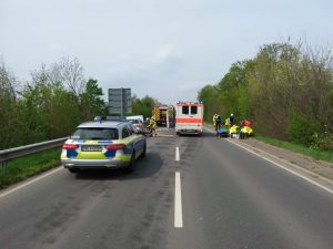 Weinheim-Hohensachsen. Am Gründonnerstag kam es am Mittag kurz vor 13 Uhr auf der Kreisstraße zwischen Hohensachsen und Muckensturm zu einem Frontalzusammenstoß zweier Fahrzeuge. Zwischen der Anschlussstelle zur Bundesstraße 3 und der Berliner Straße kam aus bisher ungeklärter Ursache ein in Richtung Muckensturm fahrendes Fahrzeug in den Gegenverkehr und stieß dort mit einem entgegen kommenden Fahrzeug zusammen.