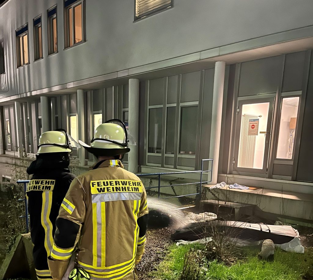 Der Feueralarm an der GRN-Klinik hatte in der Silvesternacht um Punkt 0 Uhr ausgelöst – und damit auch direkt die Weinheimer Feuerwehr alarmiert. Alle Bergstraßen-Abteilungen der Weinheimer Wehr (Stadt, Lützelsachsen-Hohensachsen, Sulzbach) rückten an. Ebenfalls noch in der Brandnacht vor Ort waren der stellvertretende Kreisbrandmeister Matthias Splett und Weinheims Feuerwehrkommandant Bernd Meyer. Beide hatten sich ein Bild von der Einsatzlage gemacht und anschließend das schnelle Eingreifen des Weinheimer Klinikpersonals gelobt.
