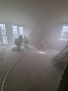 Ein besonderer Aspekt der Übung war das Vorgehen mit Wasser am Rohr. Es wurde bewusst mit gefüllten Schlauchleitungen gearbeitet. Diese sind deutlich schwerer und beeinflussen das taktische Vorgehen im Innenangriff spürbar. Genau diese Bedingungen sind im Einsatz entscheidend und müssen regelmäßig trainiert werden.
