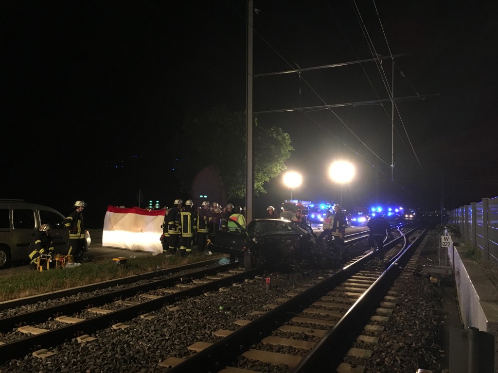 Am frühen Freitagmorgen, kurz vor 5:45 Uhr wurden die Feuerwehr Weinheim Abteilungen Lützelsachen-Hohensachsen und Stadt zu ein einem schweren Verkehrsunfall, auf die Südliche Bergstraße (Bundesstraße 3) gerufen. Ein 5er BMW aus Mannheim, fuhr mit überhöhter Geschwindigkeit von Weinheim kommend in Richtung Lützelsachsen, frontal gegen einen Fahrleitungsmast der RNV. Dadurch wurde das Fahrzeug über 40 Meter weit weg geschleudert und ist im Gleisbett der Straßenbahnlinie liegen geblieben. Der Aufprall war so enorm, dass der Motor auf den Fußgängerweg geschleudert wurde und zahlreiche Autoteile in der gesamten Unfallstelle großflächig verstreut wurden.