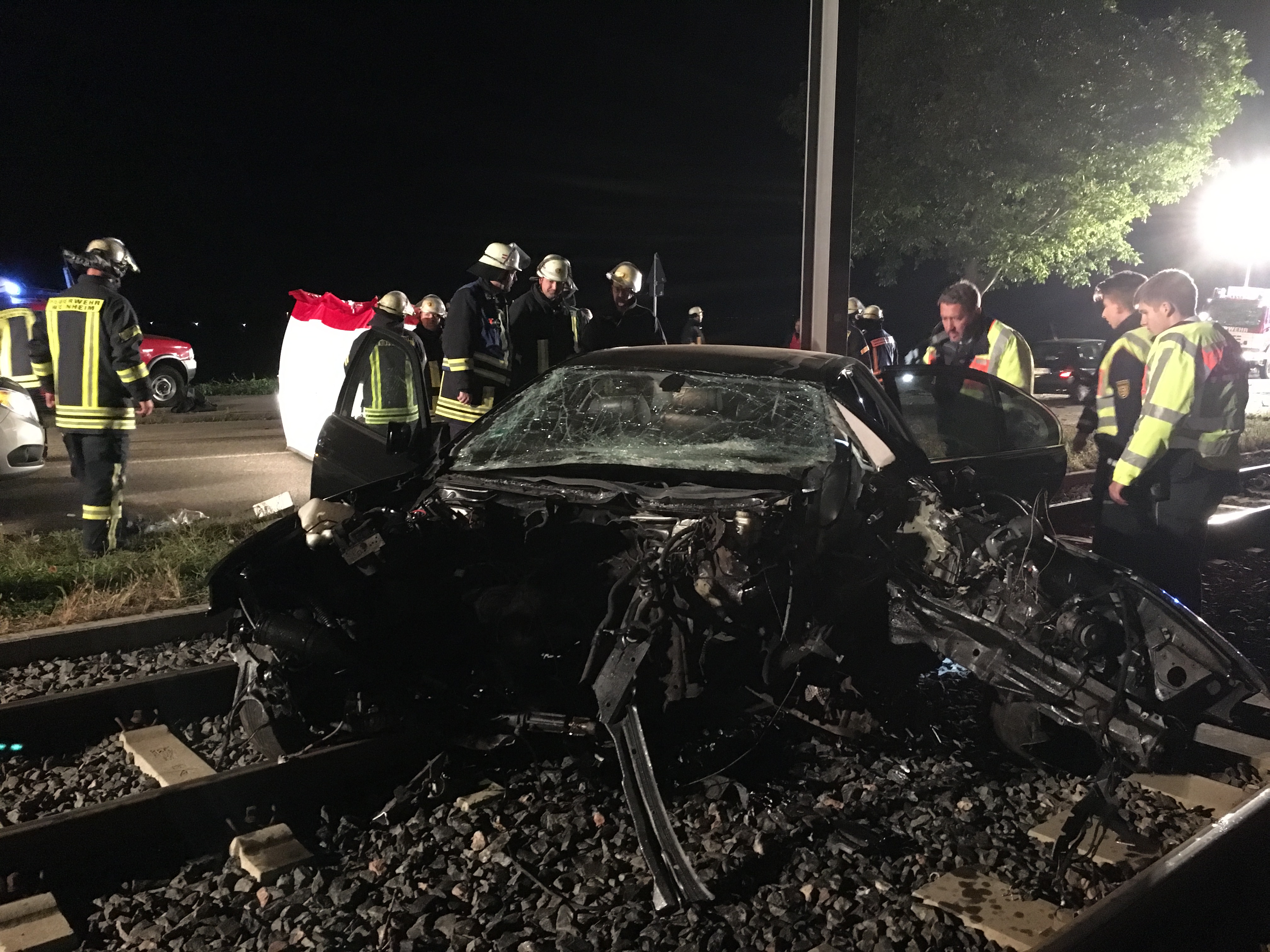 Am frühen Freitagmorgen, kurz vor 5:45 Uhr wurden die Feuerwehr Weinheim Abteilungen Lützelsachen-Hohensachsen und Stadt zu ein einem schweren Verkehrsunfall, auf die Südliche Bergstraße (Bundesstraße 3) gerufen. Ein 5er BMW aus Mannheim, fuhr mit überhöhter Geschwindigkeit von Weinheim kommend in Richtung Lützelsachsen, frontal gegen einen Fahrleitungsmast der RNV. Dadurch wurde das Fahrzeug über 40 Meter weit weg geschleudert und ist im Gleisbett der Straßenbahnlinie liegen geblieben. Der Aufprall war so enorm, dass der Motor auf den Fußgängerweg geschleudert wurde und zahlreiche Autoteile in der gesamten Unfallstelle großflächig verstreut wurden.