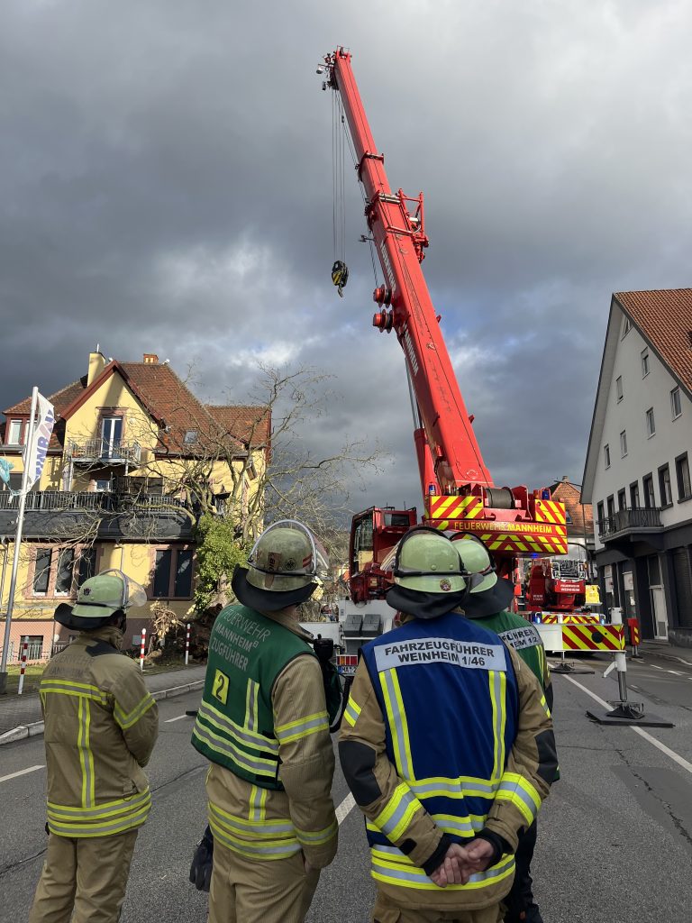 Berufsfeuerwehr Mannheim unterstützt mit Kran