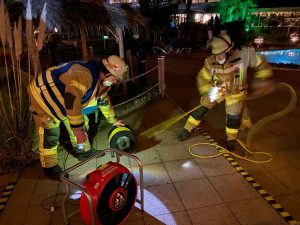Zum ersten Einsatz im neuen Jahr mussten die Abteilungen Lützelsachsen-Hohensachsen und Stadt gemeinsam ausrücken. Aus bisher ungeklärter Ursache kam es gegen 4 Uhr an Neujahr zu einem Zimmerbrand in einem Freizeitbad. Das dort eingesetzte Reinigungspersonal stellte das Feuer fest, alarmierte die Freiwillige Feuerwehr und konnte durch erst Löschversuche den Brand unter Kontrolle bringen. Die Feuerwehr übernahm die Einsatzstelle, während die Ersthelfer mit Verdacht einer Rauchvergiftung vom Rettungsdienst betreut wurden. Es wurde ein Einsatz mit Bereitstellung aufgebaut und die Einsatzstelle großflächig ausgeleuchtet.