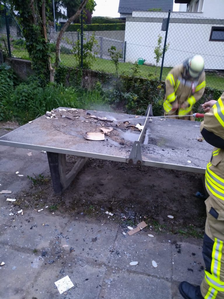 Weinheim-Lützelsachsen. [RM] Am Dienstagabend meldeten aufmerksame Anwohner einen Kleinbrand auf einem Spielplatz in der Wintergasse. Mehrere unbekannte Personen wurden dabei beobachtet, wie sie Müll auf einer Tischtennisplatte anzündeten. Beim Eintreffen der Freiwilligen Feuerwehr, Abteilung Lützelsachsen-Hohensachsen, waren die Zündler bereits flüchtig. Die Tischtennisplatte wurde abgelöscht und die Einsatzstelle anschließend an die Polizei übergeben. Diese hat die Ermittlungen aufgenommen und nimmt sachdienliche Hinweise unter 06201/10030 entgegen.