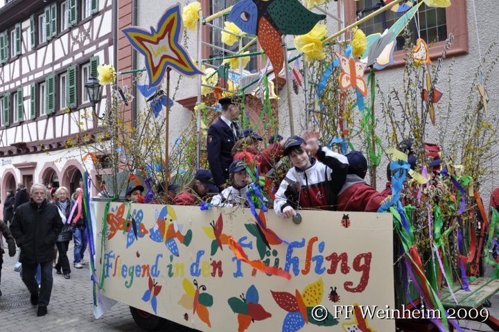 Mit „Winter ade“ beteiligte sich die Jugendfeuerwehr Weinheim neben zahlreichen anderen teilnehmenden Jugendgruppen, Schulen und Kindergärten am diesjährigen Sommertagsumzug. In mehrwöchiger Arbeit, bastelten die Jugendlichen der Jugendfeuerwehr Weinheim Abteilung Stadt einen Motivwagen. Mit dem Spruch: „Fliegend in den Frühling “ machten ...
