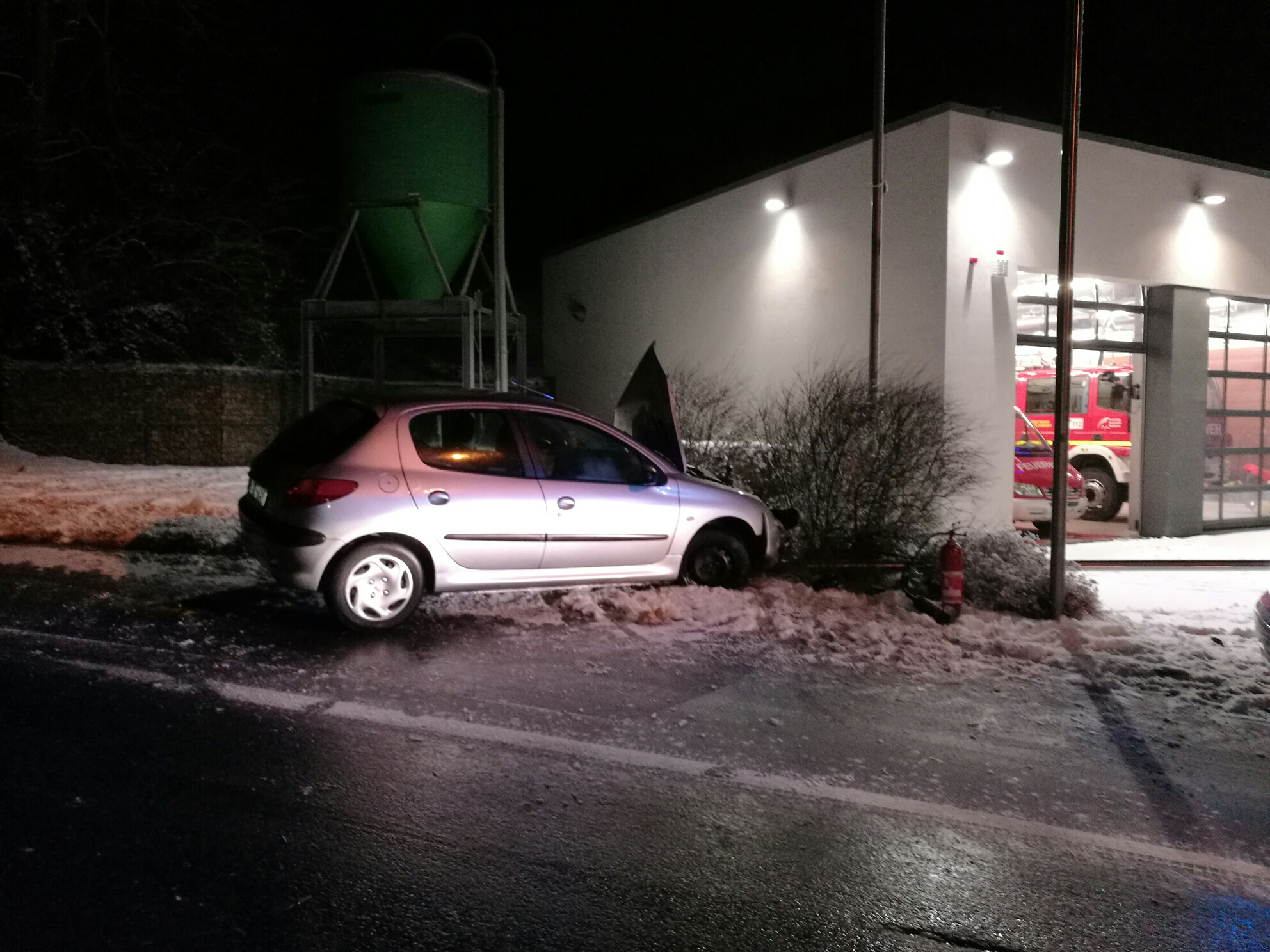 Auto kracht in Fahnenmast am Feuerwehrhaus Oberflockenbach