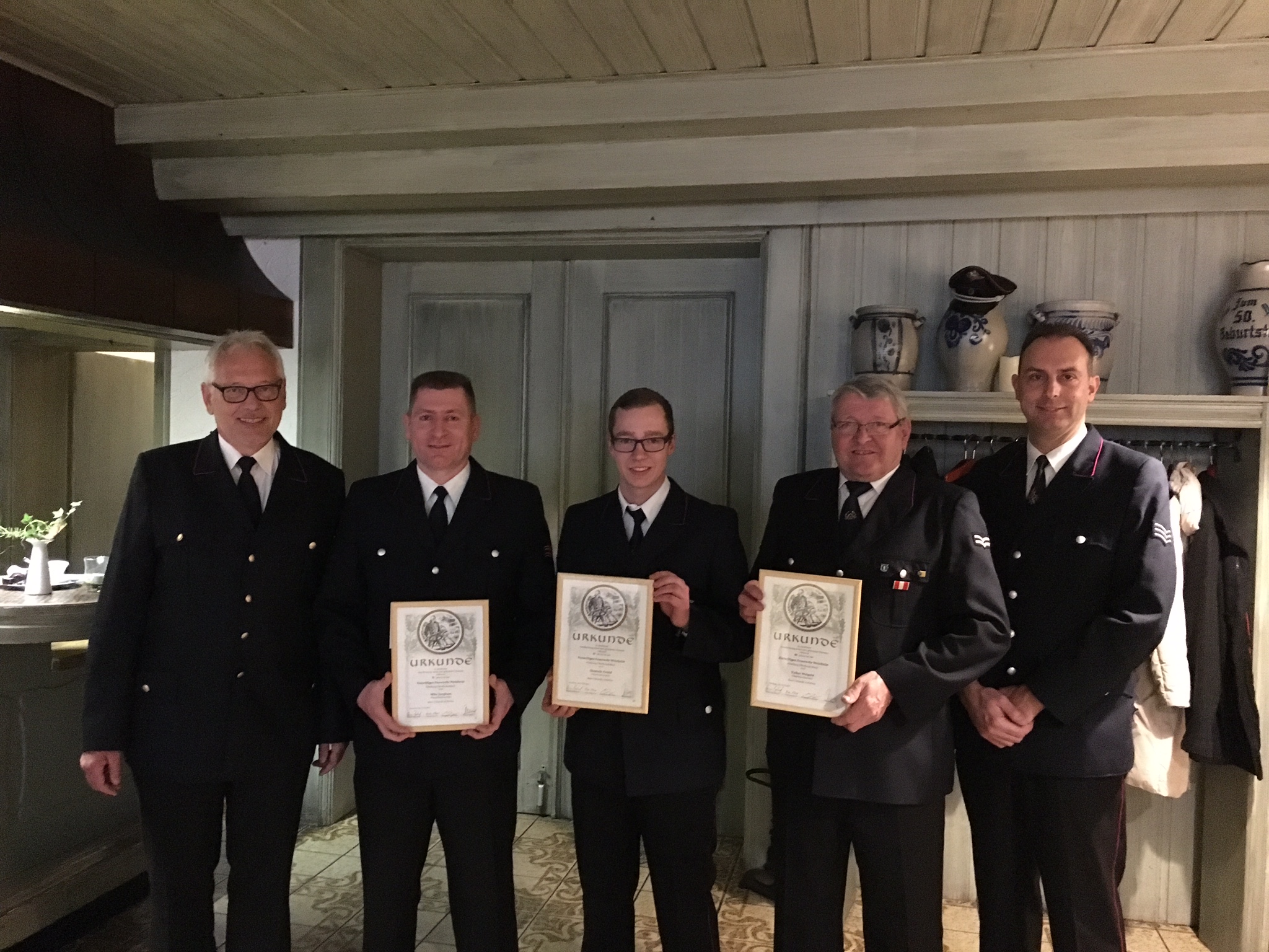 Sven Hufnagel zum Oberlöschmeister, Mike Junghans zum Hauptlöschmeister und Rainer Schmitt zum Brandmeister.