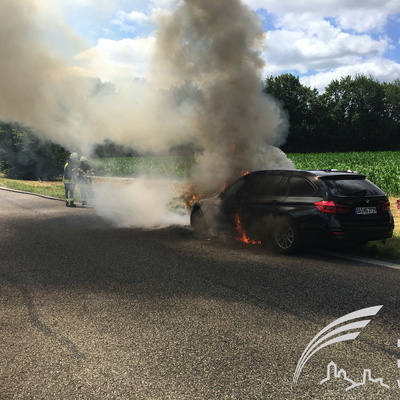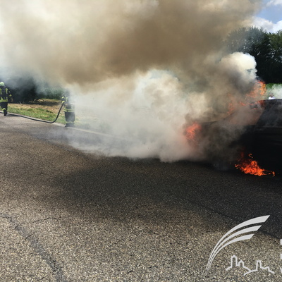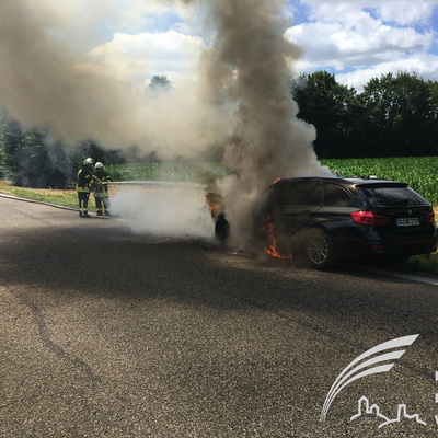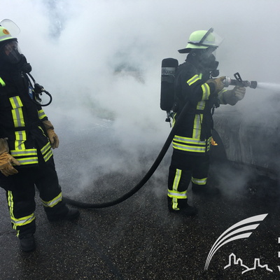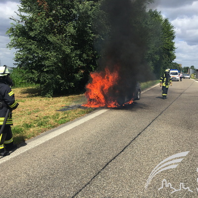 Weinheim. [RM] Zu einem Fahrzeugbrand kam es auf der Autobahn 5, kurz nach dem Autobahnkreuz Weinheim, an der Ausfahrt des Parkplatz Fliegwiese. Der Fahrer konnte sich rechtzeitig in Sicherheit bringen und wurde von der Besatzung zweier Rettungsdienst Fahrzeuge die zufällig vorbeikamen betreut. Löschversuche des Rettungsdienst Personals blieben aufgrund der schnellen Brandausbreitung erfolglos. Ein Trupp unter Atemschutz löschte den Brand mit dem ersten Rohr. Ein weiter Trupp unter Atemschutz öffnete mit dem Spreitzer die Motorhaube, um das Feuer auch dort besser bekämpfen zu können. Die Ausfahrt des Autobahnparkplatz musste, wie auch die Fahrspur in Richtung Süden für eine halbe Stunde gesperrt werden. Dafür wurde der Gerätewagen Licht mit der Verkehrswarneinrichtung eingesetzt. Nach einer abschließenden Brandnachschau mit der Wärmebildkamera konnte die Einsatzstelle an die Autobahnpolizei übergeben werden. Während der Einsatz kam es bis 12:30 Uhr zu stockendem Verkehr.