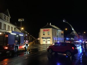 Eine kurze heftige Sturmböe sorgte in der Nacht von Sonntag auf Heiligabend für einige Schäden im Stadtgebiet. Während die meisten eine ruhige Nacht hatten, waren 20 Einsatzkräfte der Abteilung Stadt ab 2 Uhr im Einsatz. An der Bergstraße Ecke Nördliche Hauptstraße deckte die Böe Teile eins Daches ab. Ziegel, Bleche und Dachpappe fielen von dem Eckhaus auf die Bergstraße und Nördliche Hauptstraße. Die Feuerwehr musste für die technische Hilfeleistung zwischen 2 Uhr und 5 Uhr die Bergstraße und Nördliche Hauptstraße komplett sperren. Zwei vor dem Haus abgestellte Fahrzeuge wurden in den sicheren Bereich umgeparkt. Mit der Drehleiter wurde die Lage auf dem Dach erkundet und die losen Ziegel entfernt. Parallel dazu wurde die Einsatzstelle ausgeleuchtet und die Straße von den Trümmern befreit. Zur Unterstützung kam auch der Bauhof der Stadt Weinheim und die Polizei vor Ort. Der Bauhof sicherte den Gehweg, damit bis zur Reparatur des Dachs niemand in den Gefahrenbereich laufen kann. Zur Beurteilung der Lage konnte eine Dachdecker Firma aus Hemsbach erreicht werden, die vor Ort kam. Gegen 5 Uhr konnte der Einsatz beendet werden.