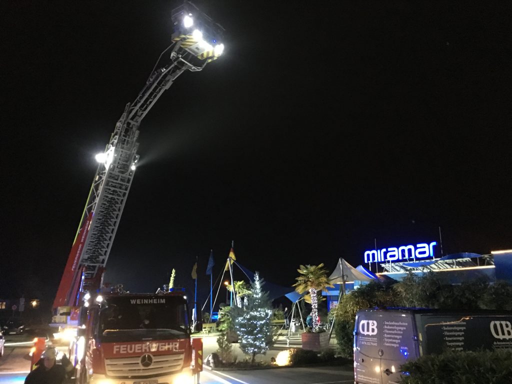 Am Montagabend wurden die Abteilungen Lützelsachsen-Hohensachsen und Stadt um 18 Uhr in die Waidallee gerufen. Im Freizeitbad Miramar wurde im Bereich der Kristalltherme Brandgeruch wahrgenommen. Bei Ankunft der Feuerwehr war der Brandgeruch deutlich wahrnehmbar und Rauch aus einer Deckenöffnung festgestellt worden. Vorsorglich wurde der Bereich der Kristalltherme geräumt und die Badegäste gebeten in den anderen Badebereich zu wechseln. Während des Einsatz wurde das Bad für weitere Besucher gesperrt. Da zunächst unklar war, wo die Rauchentwicklung herkam, wurde mit der Drehleiter der Dachbereich kontrolliert. Weitere Trupps unter Atemschutz begannen im Inneren des Gebäudes mit Wärmebildkameras nach dem Feuer zu suchen. Auch im Keller wurde vorsorglich ein Trupp zur Erkundung eingesetzt. Parallel dazu bauten weitere Einsatzkräfte die Löschwasserversorgung und den Löschangriff auf. Nachdem die Feuerwehr den restlichen Badebereich kontrolliert hatte, konnte eine Gefahr für die Badegäste außerhalb der Kristalltherme ausgeschlossen werden. Dadurch mussten auch keine größeren Evakuierungsmaßnahmen durchgeführt werden. Trotzdem verstärkte der Rettungsdienst vorsorgliche seine Kräfte im Bereitstellungsraum. Neben den Wechselladerfahrzeugen mit den Abrollbehältern Atemschutz und Betreuung wurde auch die Abteilung Sulzbach in den Bereitstellungsraum beordert. Zur Unterstützung der Einsatzleitung vor Ort, wurde auch die Unterkreisführungsgruppe des Unterkreis Weinheim und die Kreisführung des Rhein Neckar Kreises alarmiert. In Zusammenarbeit mit der Betriebsleitung und der Haustechnik wurde zwischenzeitlich weiter nach der Ursache gesucht. Diese konnte dann auch im Verbindungsgang zwischen Therme und Hauptbad festgestellt werden. In der Zwischendecke war ein Lampen-Trafo in Brand geraten, wodurch es zu einem kleinen Schmorbrand des umliegenden Dämmmaterials und der Deckenkonstruktion kam. Mit CO² und einer D-Leitung konnte ein Atemschutztrupp den Kleinbrand unter Kontrolle bringen. Mit zwei Lüftern wurde der Brandgeruch und die leichte Verrauchung aus dem Gebäude gedrückt. Gegen 19:30 Uhr wurden die meisten Einsatzkräfte aus dem Einsatz ausgelöst. Die Abteilung Lützelsachsen-Hohensachsen blieb zur Brandwache weiter vor Ort und beendet nach einer letzten Brandnachschau gegen 22 Uhr endgültig den Einsatz.