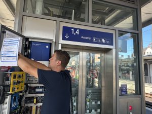 Direkt im Anschluss ging es gegen 16 Uhr an den Weinheimer Hauptbahnhof. Hier waren zwei Frauen und zwei Kinder im Aufzug eingeschlossen, nachdem dieser aufgrund eines technischen Defekts steckengeblieben war. Schnell und routiniert wurde die manuelle Steuerung des Aufzugs am Bahnsteig zwischen den Gleisen 2 und 3 von der Feuerwehr übernommen. Unverletzt konnten die Eingeschlossenen nach kurzer Zeit befreit werden. Der Aufzug wurde außer Dienst genommen und an die Servicetechniker der Deutschen Bahn übergeben.