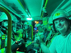 Eine für den Transport eines Patienten komplizierte Außentreppe machte den Einsatz der Abteilung Stadt noch mal erforderlich. Kurz vor Mitternacht wurden die Brandschützer in die Mülheimer Talstraße gerufen. Hier versorgte der Rettungsdienst bereits eine Person bei einem medizinischen Notfall. Für den weiteren Transport ins Krankenhaus unterstützen die Einsatzkräfte mit einer Tragehilfe. Gemeinsam mit dem Rettungsdienst wurde der Patient zum Rettungswagen gebracht und konnte von dort zur weiteren Behandlung ins Krankenhaus gebracht werden. Nach gut 20 Minuten konnte auch dieser Einsatz beendet werden.