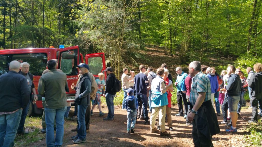Traditionell startete die Freiwillige Feuerwehr Weinheim Abteilung Rippenweier an Christi Himmelfahrt (05.05.2016) ihren Ausmarsch. Während ein paar Kammeraden das Feuerwehrgerätehaus für das abschließende Grillen vorbereiteten, startete die über 50 Mann starke Wandergruppe um 8:30 Uhr bei Sonnenschein und angenehmen Temperaturen auf die Tour. Erwin Fath und Karl Maydt, die die Wanderstrecke wie in den Jahren zuvor vorbereitet hatten, übernahmen die Führung. Über den Dick Parkplatz und Leichtweg führte der Weg durch den Wolfenklingen Weg entlang der südlichen Gemarkungsgrenze nach Schriesheim, Leutershausen und Großsachsen zu der „Himmelsleiter“. Dort angekommen warteten schon 2 Kammeraden mit einer kleinen Stärkung in Form von Bretzeln und Getränken. Nach erfolgter Stärkung ging es dann für die Wanderer zurück über den Oberer Steinrasselweg nach Heiligkreuz und von dort weiter über den „Schulberg“ zum Feuerwehrhaus. Erschöpft und hungrig konnte man sich dann an den frisch gegrillten Steaks und Würstchen sowie den gespendeten Salaten stärken. Später wurde dann noch der Kuchen, der ebenfalls von den Angehörigen der Feuerwehr sowie des Fördervereins gespendet wurde, verzehrt. Die Angehörigen der Feuerwehr ließen es sich, bei sommerlichen Temperaturen, bis in die Abendstunden gutgehen und genossen den Vatertag. Das Kommando bedankt sich bei allen Helfern, Kuchen- und Salatspendern sowie bei Erwin Fath und Karl Maydt für die Vorbereitung der Tour. Wir freuen uns auf das nächste Jahr und sind gespannt welche interessante Tour dann erwandert wird.