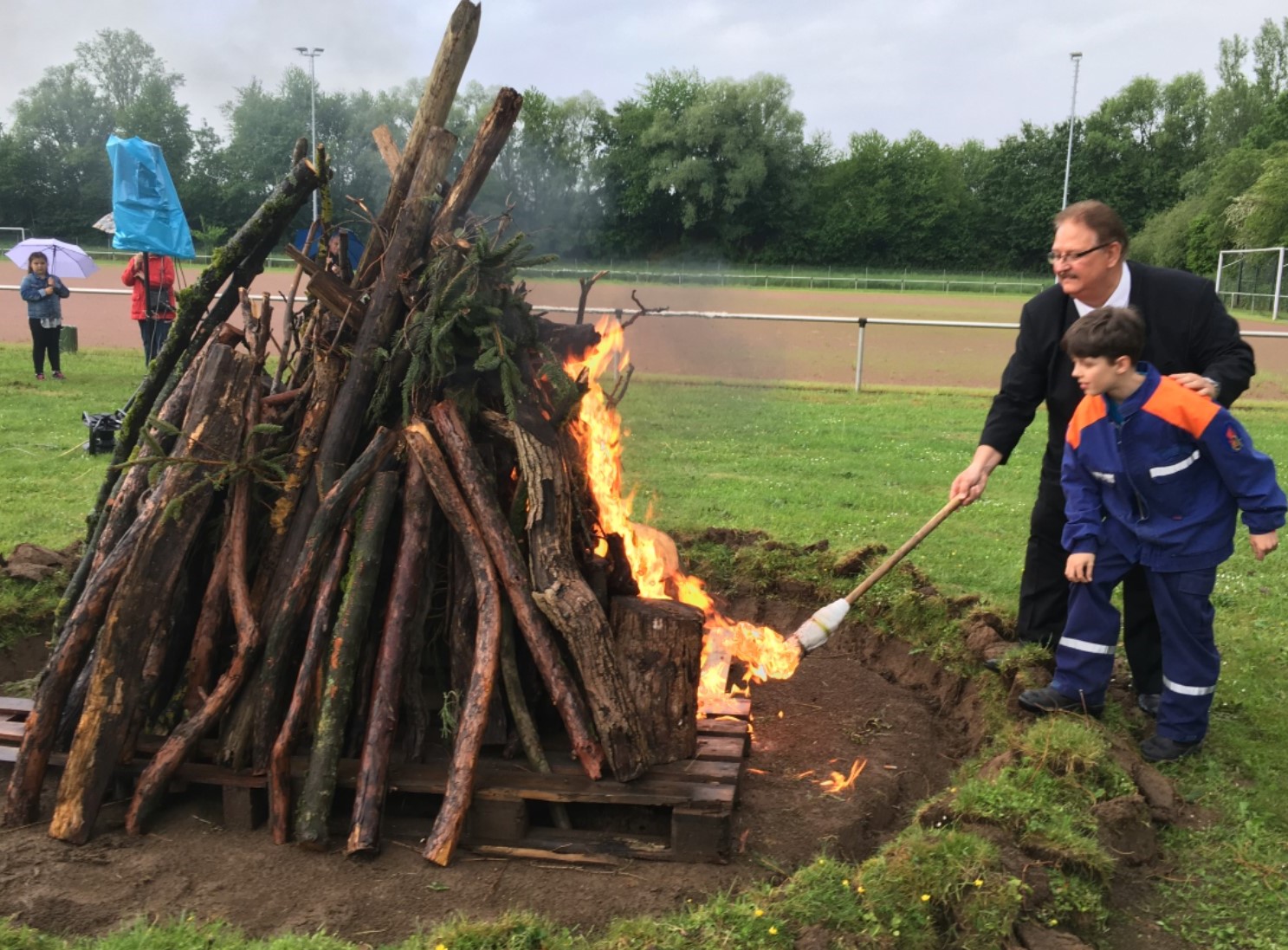Weinheim – Am Pfingstwochenende fand das 12. Bereichszeltlager der Jugendfeuerwehren des Unterkreises Weinheim statt. Mit der Entzündung des Lagerfeuers am Sportplatz in Weinheim-Sulzbach wurde das Pfingstzeltlager des Feuerwehrnachwuchses am Freitagabend von Bereichsleiter Florian Fath und Ortsvorsteher Frank Eberhardt eröffnet.