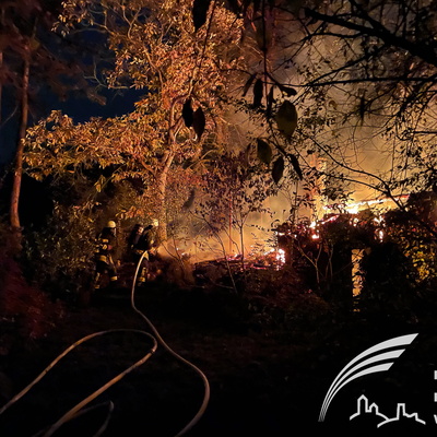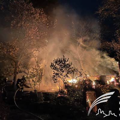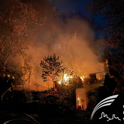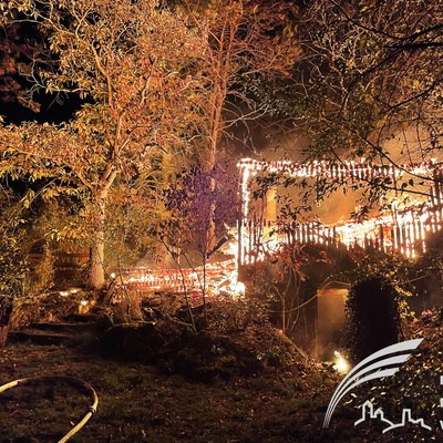 Bei Eintreffen des ersten Fahrzeuges, stand eine große Gartenhütte bereits im Vollbrand. Da die Hütte im Wald lag und die Straßenverhältnisse sehr beengt waren, konnten die großen Löschfahrzeuge die Einsatzstelle nicht direkt anfahren und es musste eine Wasserförderung über lange Wegstrecke aufgebaut werden, um ausreichend Löschwasser zu erhalten.