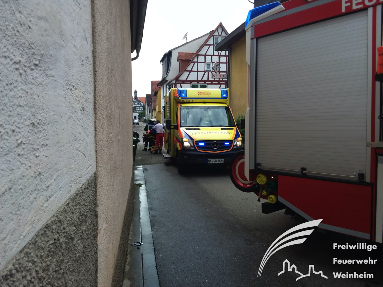 Weinheim. Das Weinheimer Stadtgebiet wurde am Mittwochmittag gegen 13 Uhr von einer Gewitterfront stark getroffen. Mehrere Menschen benötigten die Hilfe der Weinheimer Feuerwehr um den Unwetter-, Blitz- und Starkregengussschäden Herr zu werden. Um die Einsatzstellen abzuarbeiten, waren alle Weinheimer Feuerwehrabteilungen im Einsatz. Besonders von der Unwetterlage waren die Weststadt und der Ortsteil Lützelsachsen betroffen. Aber auch im Odenwald musste die Feuerwehr tätig werden. Einer der ersten Einsätze führte die Einsatzkräfte der Abteilung Rippenweier in den Bereich des Wanderparkplatz Ursenbacher Höhe zwischen Rippenweier und Ursenbach. Hier war durch den starken Regen der Hang ins Rutschen gekommen und versperrte ein Teil der Fahrbahn. Die Einsatzstelle wurde gesichert und im weiteren Verlauf an die Straßenmeisterei übergeben.
