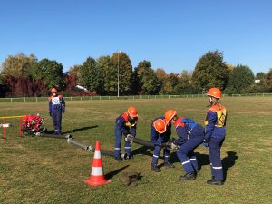 Bei strahlenden Sonnenschein und sommerlichen Temperaturen nahmen über 110 Jugendliche in 13 Gruppen aus dem Rhein-Neckar-Kreis, dem Neckar-Odenwald-Kreis, Göppingen, Biberach und dem Stadtkreis Karlsruhe daran teil. Um 9 Uhr begrüßte Erster Bürgermeister und Feuerwehrdezernent Dr. Torsten Fetzner, sowie der Abnahmeberichtigte der Jugendfeuerwehr Baden-Württemberg Sebastian Waidmann die angereisten Jugendlichen und ihre Betreuer. Anschließend ging es für die Gruppen endlich mit den Disziplinen los, die zuvor von den Schiedsrichtern des Rhein-Neckar-Kreises aufgebaut wurden und im weiteren Verlauf auch von ihnen betreut wurden.