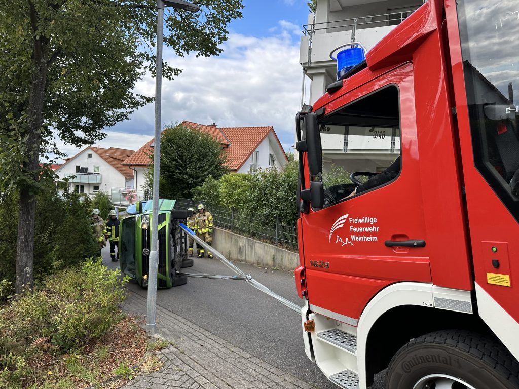 Pkw in der Straße Zum Lindenbrunnen umgekippt – mehrere Einsätze fordern die Weinheimer Feuerwehr