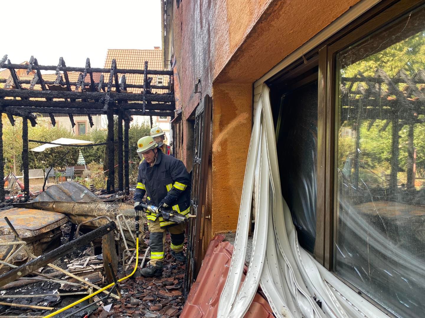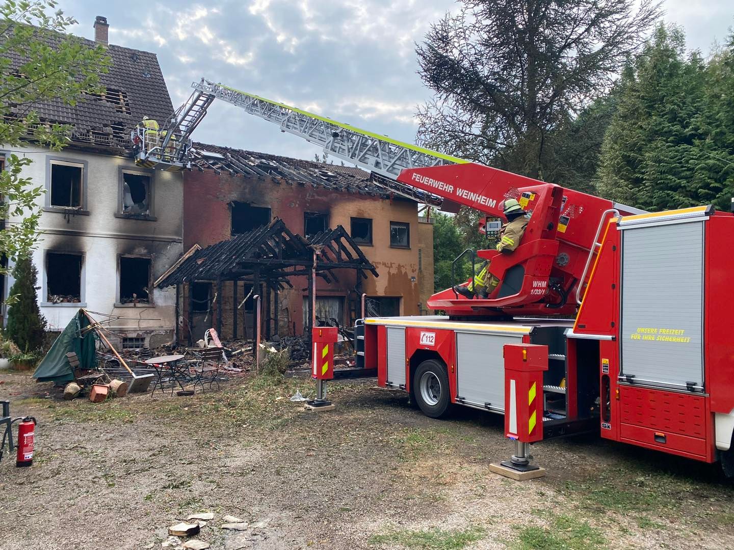 Weinheim-Ritschweier, Rhein-Neckar-Kreis: Wohnhaus komplett ausgebrannt und nicht mehr bewohnbar; mehrere hunderttausend Euro Sachschaden; eine Bewohnerin wurde leicht verletzt.