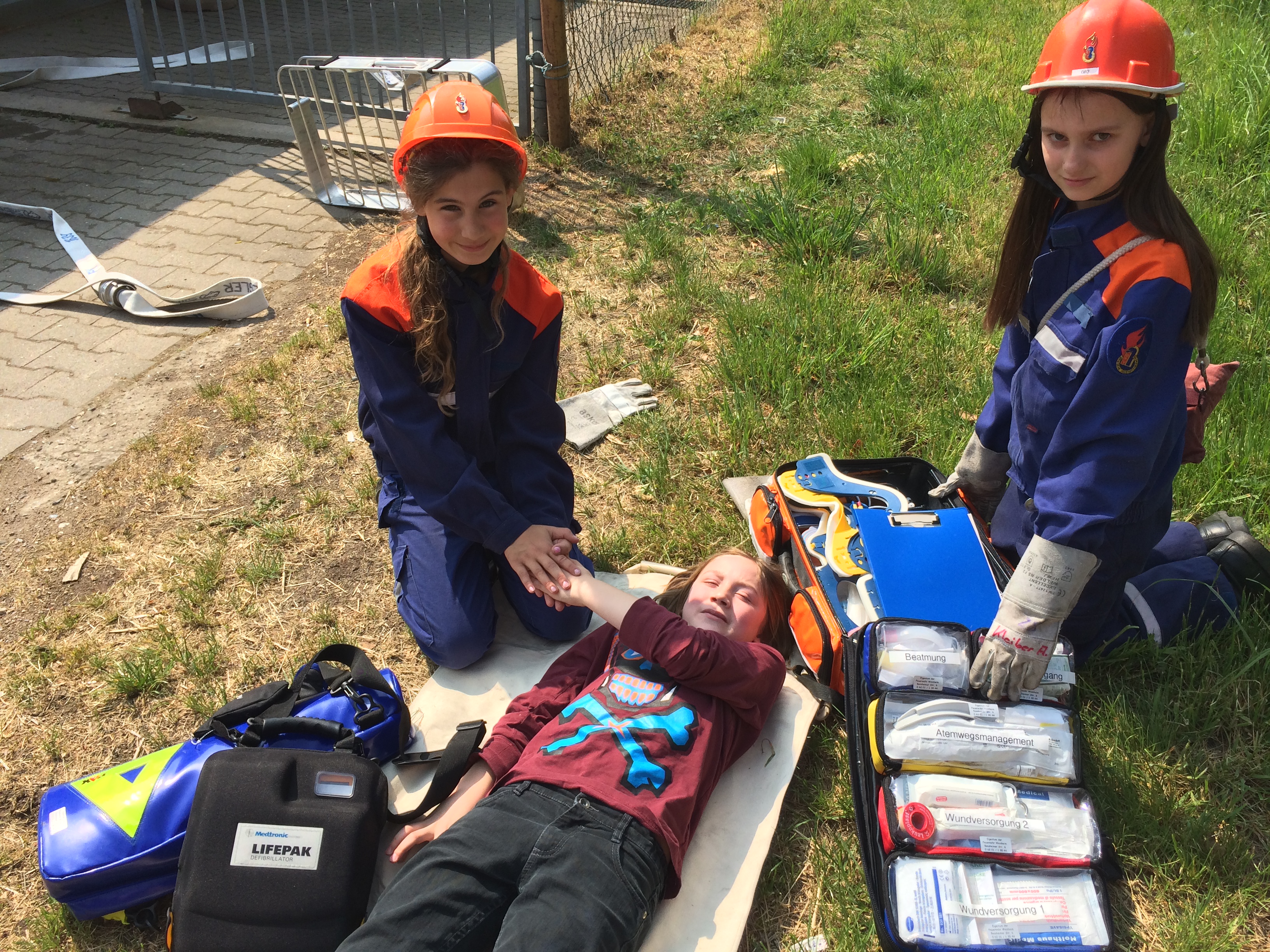 VerletzenbetreuungEs wurde angenommen, dass es zu einem Gebäudebrand des Vereinsheims gekommen war. Aber nicht nur die Brandbekämpfung stand zur Aufgabe, auch die Menschenrettung und Personensuche, denn es wurde eine Person in dem Gebäude vermutet. Während die Jugendlichen aus Sulzbach den Innenangriff zur Menschenrettung vornahmen, baute derweil die Abteilung Stadt eine Riegelstellung auf um eine Brandausbreitung auf benachbarte Gebäude zu vermeiden. Die Jugend der Abteilung Lützelsachsen-Hohensachsen kümmerte sich um die Brandbekämpfung im Bereich des Dachs, während die Odenwaldabteilungen die Wasserversorgung aufbauten und sicherstellten.