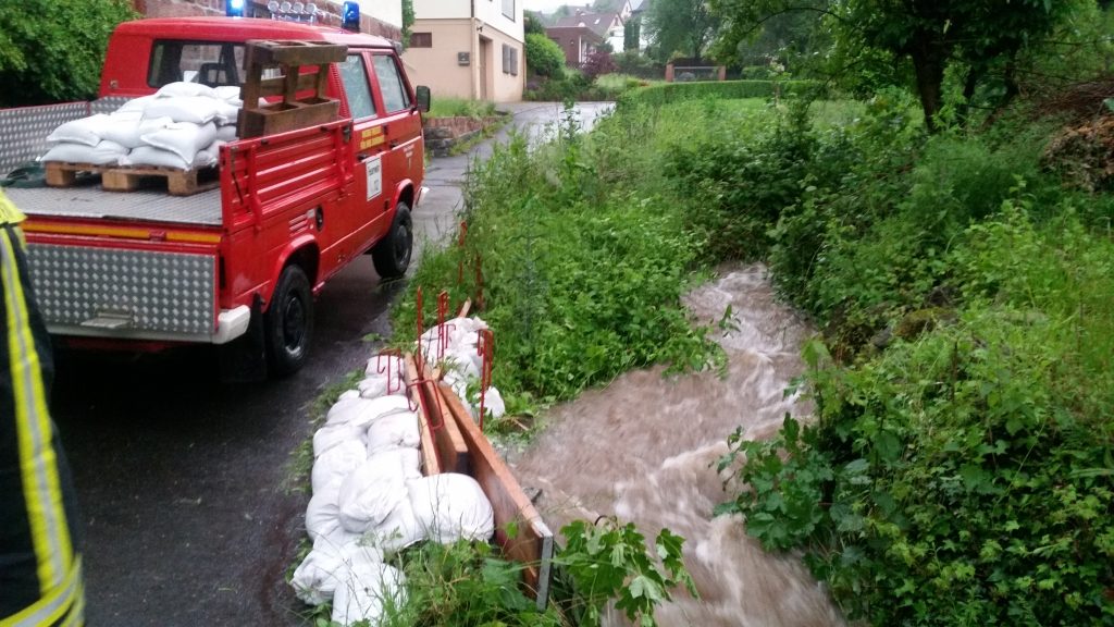 Kurz nach 2 Uhr wurde die Freiwillige Feuerwehr Weinheim Abteilung Stadt zu einem Wasserschaden in den Friedrich Ebert Ring gerufen. Dort war auf circa 100 Quadratmeter Fläche ein Keller Knie hoch unter Wasser gestanden. Als die ersten Kräfte mit Wassersauger und Tauchpumpen anfingen, das Wasser wegzupumpen, wusste noch keiner der ehrenamtlichen Helfer, dass dies der Beginn einer ganzen Einsatzwelle sein wird, die ihren Höhepunkt gegen 6 Uhr am Montagmorgen nahm. Neben der Abteilung Stadt, waren im weiteren Verlauf der Nacht auch die Abteilungen Lützelsachsen-Hohensachsen und Oberflockenbach zu Einsatzstellen ausgerückt. An der Bäckereifachschule verstopfte ein Rechen, was dazu führte, dass das Wasser sich aus dem Bachbett drückte und die Straße sowie Teile des Gebäudes fluteten. Ähnlich sah es auch im Bereich des Waldschimmbad aus. Mit Unterstützung des Baubetriebshof der Stadt Weinheim wurden die Rechen gesäubert, und das Wasser durch die Feuerwehr abgepumpt.
