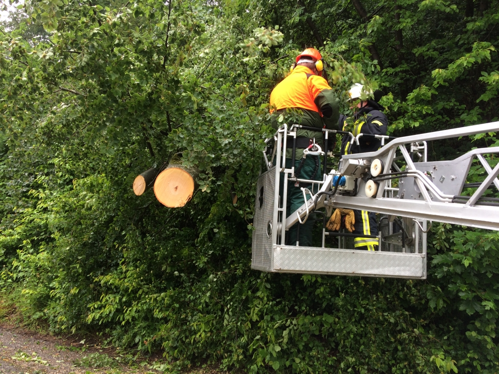 Auch in den Ortsteilen Lützelsachsen und Hohensachsen, machten die Regenmengen nicht halt. Hier lag der Schwerpunkt vollgelaufener Keller im Stachelbeerweg in der Lützelsachsener Ebene. Mehrere Häuser waren betroffen und mussten von der Feuerwehr vom Wasser befreit werden. Die eingesetzten Kräfte mussten auch einen Rechen oberhalb der Wintergasse sowie am Talberg freimachen. Zu einer Vollsperrung des Verbindungswegs zwischen Ritschweier und Hohensachsen kam es, nachdem sich dort ein Baum quer gelegt hatte. Die Abteilung Lützelsachsen-Hohensachsen, konnte den Baum mit Unterstützung der Drehleiter aus der Abteilung Stadt beseitigen und nach einer Stunde die Fahrbahn wieder frei geben. Auch die Kontrolle des vollgelaufenen Landgrabens in der Heddesheimer Straße war eine Einsatzstelle, die abgearbeitet werden musste.