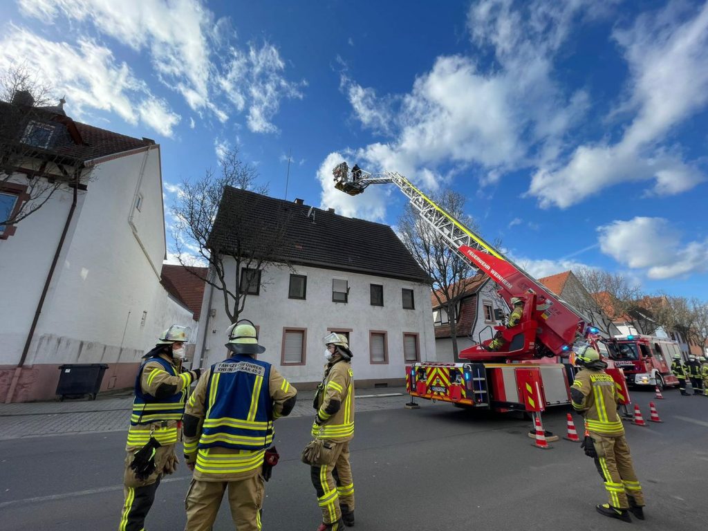 Parallel zu diesem Einsatz musste die Feuerwehr in die Alte Landstraße ausrücken. Hier waren auf dem Dach eines Mehrfamilienhauses mehrere Ziegel locker und auch schon teilweise auf die Straße gefallen. Daher brachten die Einsatzkräfte die Drehleiter in Stellung und räumten die Ziegel des Daches.
