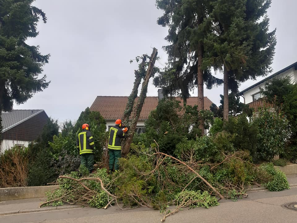 - Dunkel wurde es im Ortsteil Rippenweier, nachdem ein Baum auf eine Überleitung gefallen war und für einen Stromausfall sorgte. Die Abteilung Rippenweier unterstützte die EnBW damit es wieder hell werden konnte.