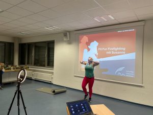 Auch wenn Corona bei der Feuerwehr vieles zum Stillstand gebracht hat, so kam Ende Februar noch mehr Bewegung und Schwung ins Ehrenamt. Das wöchentliche Training der Sportgruppe in der Sporthalle der Friedrich Schule wurde zwar eingestellt, aber dafür bewegten sich die Einsatzkräfte zumindest wieder online. Die Sportgruppe um Tobias Kain und die Feuerwehrführung wollten durch die Onlinelösung allen Weinheimer Feuerwehrangehörigen wieder ein Angebot zur Verbesserung der körperlichen Fitness bieten. Professionelle Unterstützung bekam und bekommt die Feuerwehr von Fitnesstrainerin Susanne Müller, die die Einsatzkräfte bereits vor Corona mit Ihrem Training kräftig ins Schwitzen brachte.