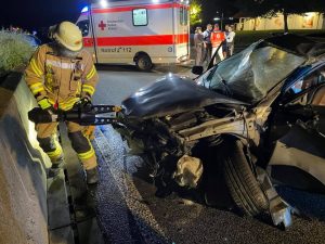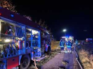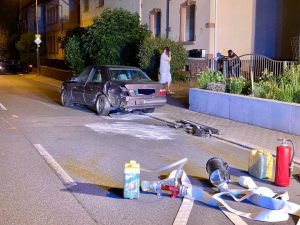 Die Abteilung Sulzbach wurde zu einem Verkehrsunfall in der Nördlichen Bergstraße alarmiert. Ein Autofahrer kam von der Fahrbahn ab und kollidierte mit einem geparkten Fahrzeug. Der Fahrer setzte zunächst seine Fahrt fort, kam dann aber kurz danach zum Stehen, da ihm durch den Aufprall das Vorderrad abhandenkam. Der Fahrer hatte Glück und verletzte sich nicht, so dass der Rettungsdienst ihn nicht medizinisch versorgen musste. Die Feuerwehr unterstützte die Polizei bei der Verkehrsabsicherung und leuchtete die Unfallstelle aus. Die auslaufenden Betriebsstoffe wurden aufgefangen und gebunden. Die Einsatzkräfte räumten im Anschluss noch die Trümmer der Fahrbahn sie sich über mehrere Meter verteilt hatten.